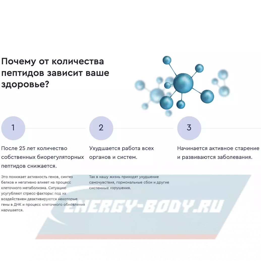 - Пептиды одновременно улучшают работу мочеполовой системы, предстательной железы и надпочечников. Поэтому снижается выраженность воспалительных процессов и повышается стрессоустойчивость.