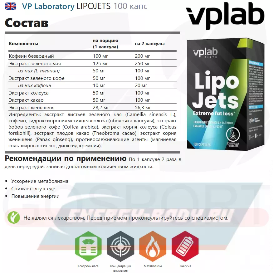 Состав VP Laboratory LIPOJETS