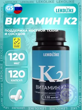 -20% 1 102 q 1 377 q 1 377 q 000 Витамин K Витамин К2 120 мкг 120 капсул LEKOLIKE В корзину Артикул 41206