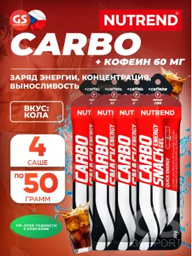 Энергетический гель Carbosnack 60mg caffeine саше 4 шт x 50 г, Кола NUTREND Подписка на товар Артикул 39267