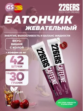 -10% 18 375 q 20 417 q 20 417 q 000 Восстановление Gummy bar + caffeine 50 mg 42 x 30 г, Вишня с колой 226ERS В корзину Артикул 41427