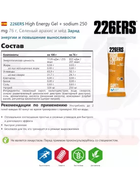 -10% 13 231 q 14 701 q 14 701 q 000 Энергетический гель High Energy Gel + sodium 250 mg 24 x 76 г, Селеный арахис и мёд 226ERS В корзину Артикул 41419