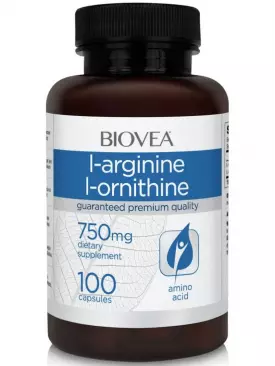 Arginine / AAKG / Цитрулин L-ARGININE / L-ORNITHINE 750 mg 100 капсул Biovea Подписка на товар Артикул 34029