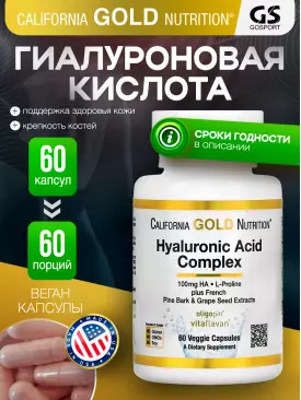 Суставы, связки Hyaluronic Acid Complex, 60 капсул 60 вегетарианские капсулы California Gold Nutrition Подписка на товар Артикул 39080