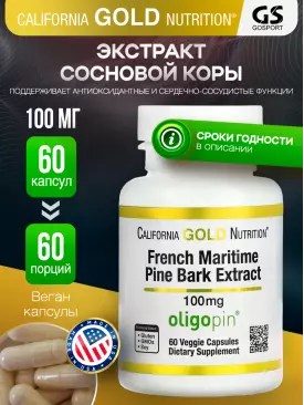 Экстракты French Maritime Pine Bark Extract 60 капсул California Gold Nutrition Подписка на товар Артикул 39079