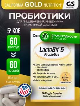 Для иммунитета LactoBif Probiotics 5 Billion 60 веган капсул California Gold Nutrition Подписка на товар Артикул 38727