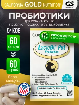 Для иммунитета LactoBif Pet Probiotics 5 Billion 60 вегетарианских капсул California Gold Nutrition Подписка на товар Артикул 37658