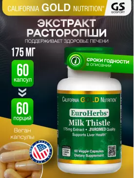 Экстракты Milk Thistle Extract EuroHerbs 175 mg 60 вегетарианских капсул California Gold Nutrition Подписка на товар Артикул 38031