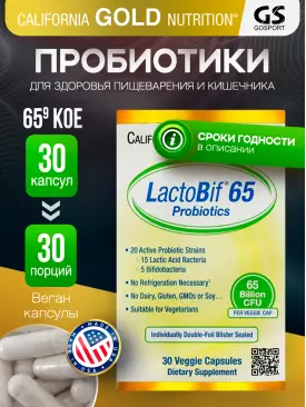 Для иммунитета LactoBif Probiotics 65 Billion CFU 30 вегетарианских капсул California Gold Nutrition Подписка на товар Артикул 37087