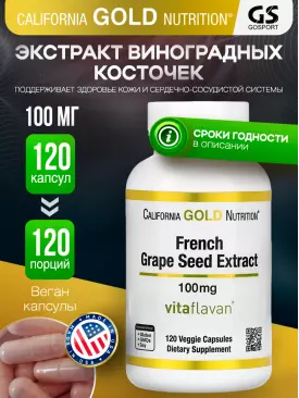 Экстракты French Grape Seed Extract 120 веган капсул California Gold Nutrition Подписка на товар Артикул 39098