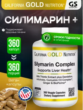 Для иммунитета Silymarin Complex 360 вегетарианских капсул California Gold Nutrition Подписка на товар Артикул 38683