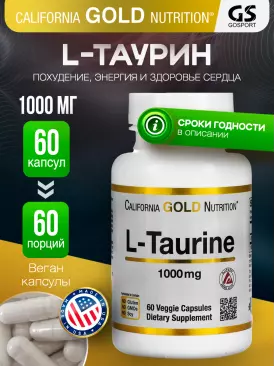 Аминокислотны L-Taurine 60 вегетарианских капсул California Gold Nutrition Подписка на товар Артикул 37659