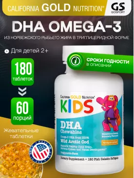 Omega 3 Children's DHA Chewables Omega-3 180 жевательных таблеток, Клкбника-Лимон California Gold Nutrition Подписка на товар Артикул 38730