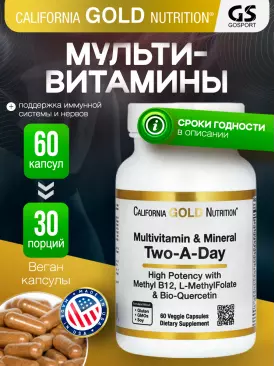 Витаминный комплекс Multivitamin and Mineral, Two-A-Day 60 вегетарианских капсул California Gold Nutrition Подписка на товар Артикул 37660