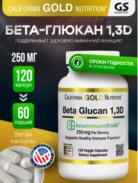 Для иммунитета Beta Glucan 1-3D with Beta-ImmuneShield 125 mg 120 вегетарианских капсул, Нейтральный California Gold Nutrition Подписка на товар Артикул 37092