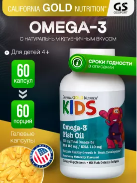 Omega 3 Kid’s Omega-3 Fish Oil, Natural Strawberry Flavor 60 гелевые капсулы California Gold Nutrition Подписка на товар Артикул 38767