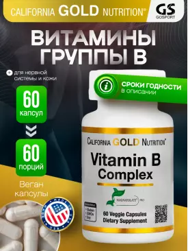 Витамины группы B Vitamin B Complex 60 веган капсул California Gold Nutrition Подписка на товар Артикул 39096