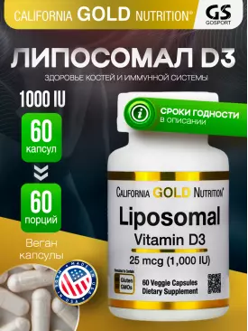 Витамин D Liposomal Vitamin D3 1000 IU 60 вегетарианских капсул California Gold Nutrition Подписка на товар Артикул 37107
