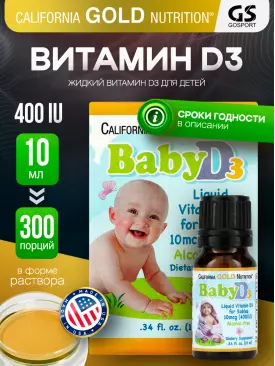 Витамин D Vitamin D3 50 mcg 2000 IU 90 капсул California Gold Nutrition Подписка на товар Артикул 37120