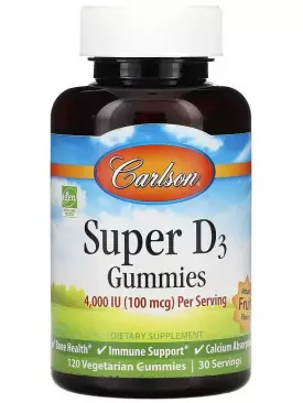 Витамин D Super D3 Gummies 120 жевательных мармеладок, Клубника-лимон-апельсин Carlson Labs Подписка на товар Артикул 37146