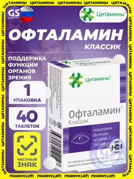 -12% 1 517 q 1 724 q 1 724 q 000 Пептиды Офталамин Классик 40 таблеток Цитамины В корзину Артикул 40987