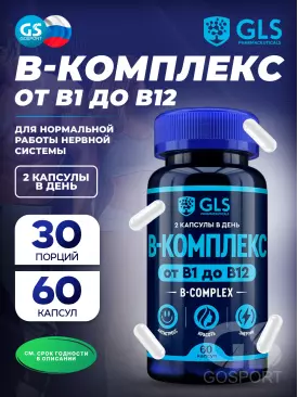 Витамины группы B B-комплекс от B1 до B12 60 капсул GLS pharmaceuticals Подписка на товар Артикул 39666