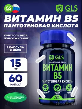 Витамины группы B Витамин B5 (пантотеновая кислота) 60 капсул GLS pharmaceuticals Подписка на товар Артикул 39812