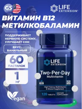 Витамины группы B Vitamin B12 Methylcobalamin 1 mg 60 леденцов, Ваниль Life Extension Подписка на товар Артикул 37264