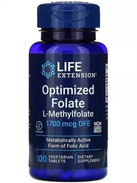 Витамины группы B Optimized Folate 1700 mcg DFE 100 вегетарианских капсул Life Extension Подписка на товар Артикул 37254
