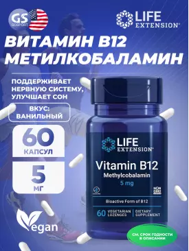 Витамины группы B Vitamin B12 Methylcobalamin 5 mg 60 леденцов, Ваниль Life Extension Подписка на товар Артикул 37219