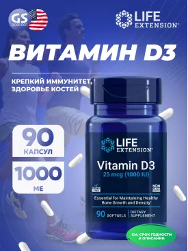 Витамин D Vegan Vitamin D3 125 mcg (5000 IU) 60 вегетарианских капсул Life Extension Подписка на товар Артикул 37237