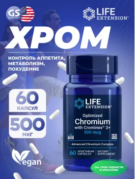 Минералы Optimized Chromium with Crominex 3+ 500 mcg 60 капсул Life Extension Подписка на товар Артикул 37266