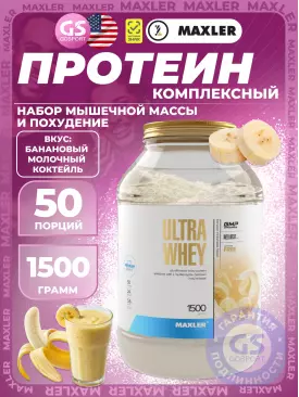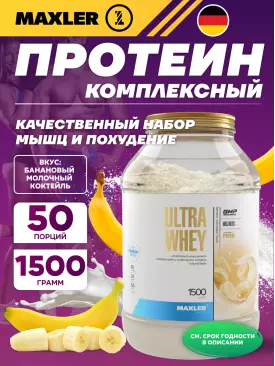 Сывороточный протеин Ultra Whey 1500 г, Банановый Молочный Коктейль MAXLER Подписка на товар Артикул 36182
