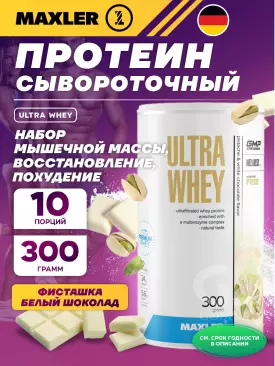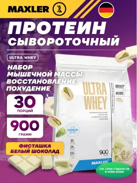 -10% 2 700 q 3 000 q 3 000 q 000 Сывороточный протеин Ultra Whey 750 г, Фисташка и белый шоколад MAXLER В корзину Артикул 39294