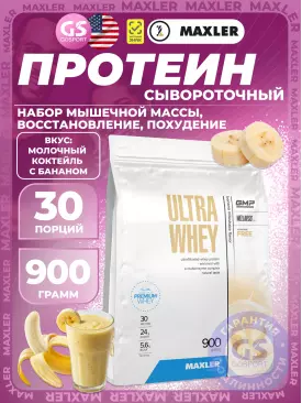 Сывороточный протеин Ultra Whey 900 г, Молочный коктейль с бананом MAXLER Подписка на товар Артикул 19995