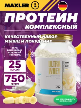 Сывороточный протеин Ultra Whey 750 г, Банановый молочный коктейль MAXLER Подписка на товар Артикул 39295