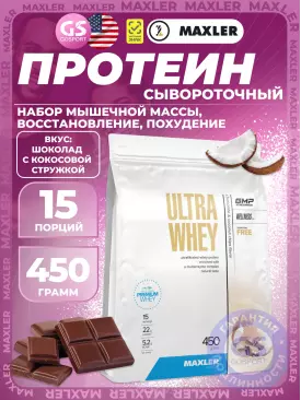 Сывороточный протеин Ultra Whey 450 г, Шоколад с кокосовой стружкой MAXLER Подписка на товар Артикул 19989