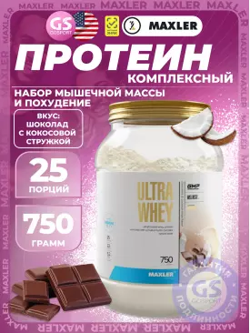 Сывороточный протеин Ultra Whey 750 г, Шоколад с кокосовой стружкой MAXLER Подписка на товар Артикул 39296