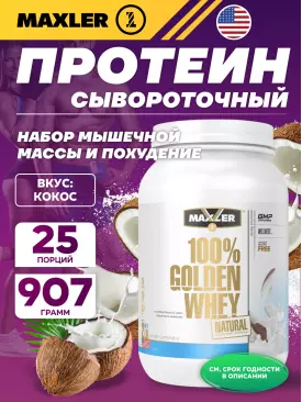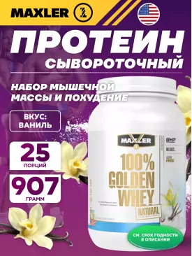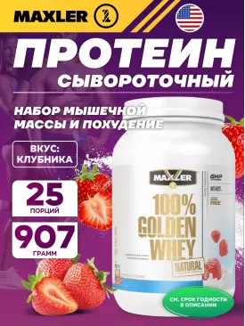 Сывороточный протеин Golden Whey Natural 907 г, Клубника MAXLER (USA) Подписка на товар Артикул 36349