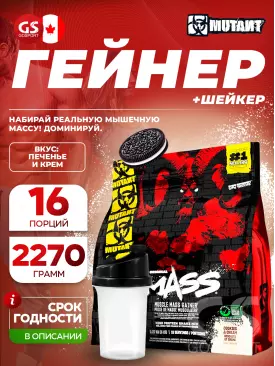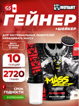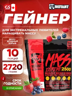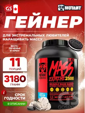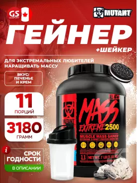 -12% Бестселлер 2 837 q 3 224 q 3 224 q 000 Гейнер Mass Extreme 2500 2720 г, Печенье с кремом Mutant В корзину Артикул 33932
