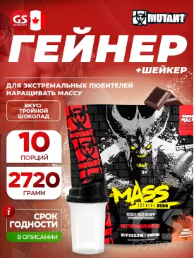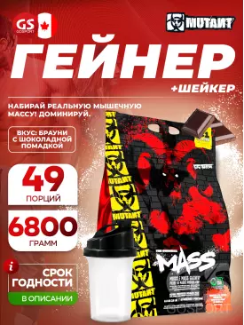 -12% 4 105 q 4 665 q 4 665 q 000 Гейнер Mass 6 lb 2720 г + шейкер, Тройной шоколад - Брауни Mutant В корзину Артикул 39386