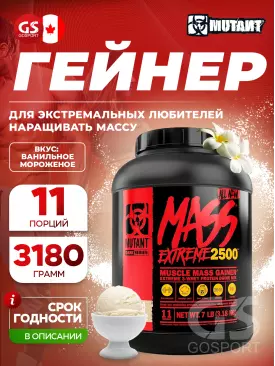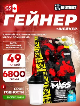 -12% 3 828 q 4 350 q 4 350 q 000 Гейнер Mass 6 lb 2720 г, Тройной шоколад & Ванильное мороженое Mutant В корзину Артикул 34878