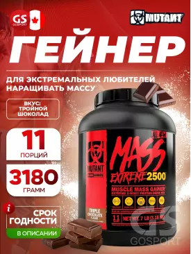 -12% Бестселлер 2 837 q 3 224 q 3 224 q 000 Гейнер Mass Extreme 2500 2720 г, Тройной Шоколад Mutant В корзину Артикул 33931
