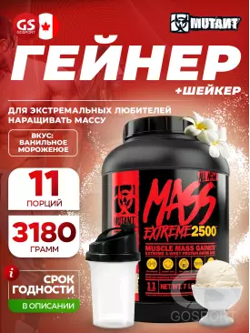 -12% Бестселлер 2 837 q 3 224 q 3 224 q 000 Гейнер Mass Extreme 2500 2720 г, Ванильное мороженое Mutant В корзину Артикул 33930