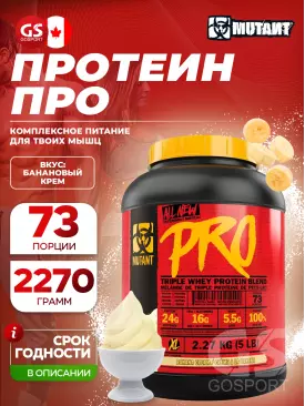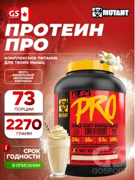 Сывороточный протеин PRO 5 lb 2270 г, Ванильный молочный коктейль Mutant Подписка на товар Артикул 34060