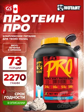 -12% 5 590 q 6 352 q 6 352 q 000 Сывороточный протеин Whey 2270 г, Печенье с Кремом Mutant В корзину Артикул 20767