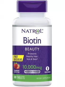 Витамины группы B Biotin 10000 mcg Fast Dissolve 60 таблеток, Клубника Natrol Подписка на товар Артикул 39866