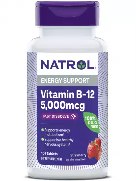 Витамины группы B Vitamin B-12 5000 мкг F/D 100 таблеток, Клубника Natrol Подписка на товар Артикул 19187