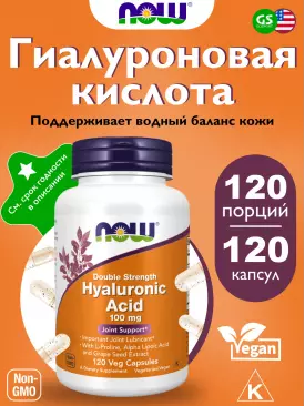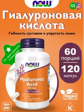 Суставы, связки Hyaluronic Acid 50 mg with MSM 120 веган капсул NOW FOODS Подписка на товар Артикул 33963