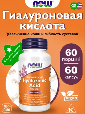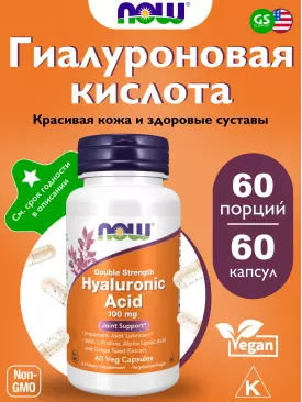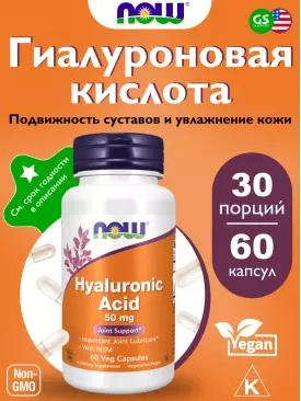 Суставы, связки Hyaluronic Acid 50 mg with MSM 60 веган капсул NOW FOODS Подписка на товар Артикул 30786